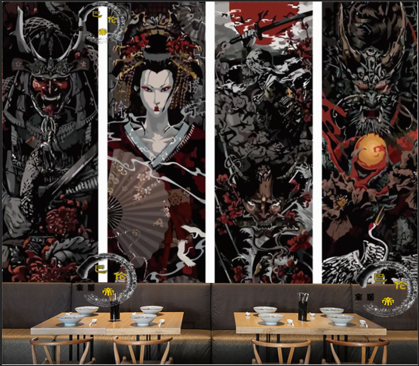 日本武士浮世绘般若壁纸日式料理寿司店背景墙刺青纹身工作室墙纸 阿里巴巴